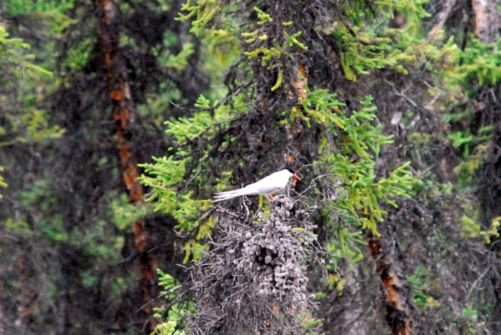This guy was sitting in the tree in the small river linking Sandy Lake with the much larger Big Salmon Lake, the third lake. We saw many bald eagles. There seems to be no shortage of them. We even saw some fishing and eating trout and grayling.