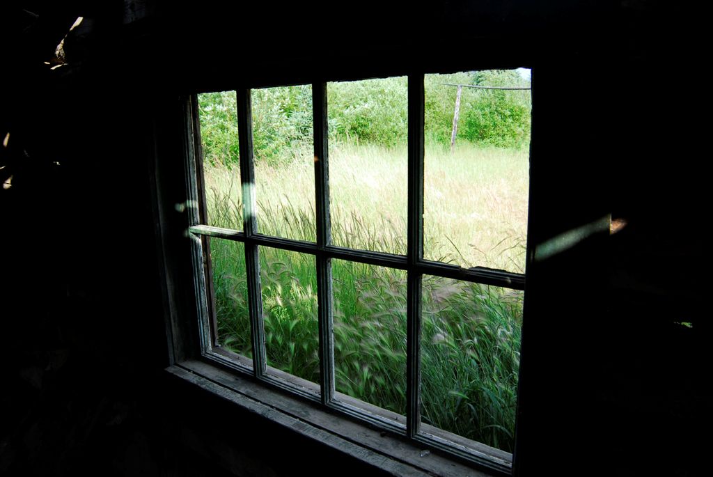 Abandoned cabins at the location of the old Little Salmon Village where the Little Salmon River flows into the Yukon. Not far away, the natives have started up a village for themselves, primarily for summer use, and salmon fishing during the run in late August