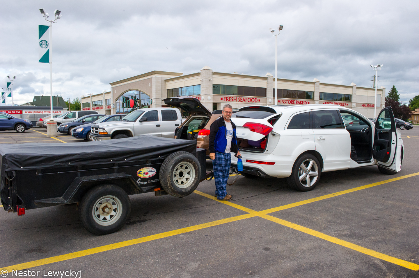 This was in Sudbury already, stopping for some food and drink. Bohdan's Subaru is the brown car with the hatch open just behind my Q7. We split up into two sets of three people.