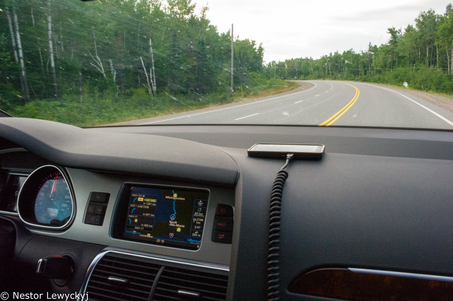 Heading north from Sault-Ste-Marie to do the long drive over the top of Lake Superior. Like in 2010, we would be doing this drive at night.