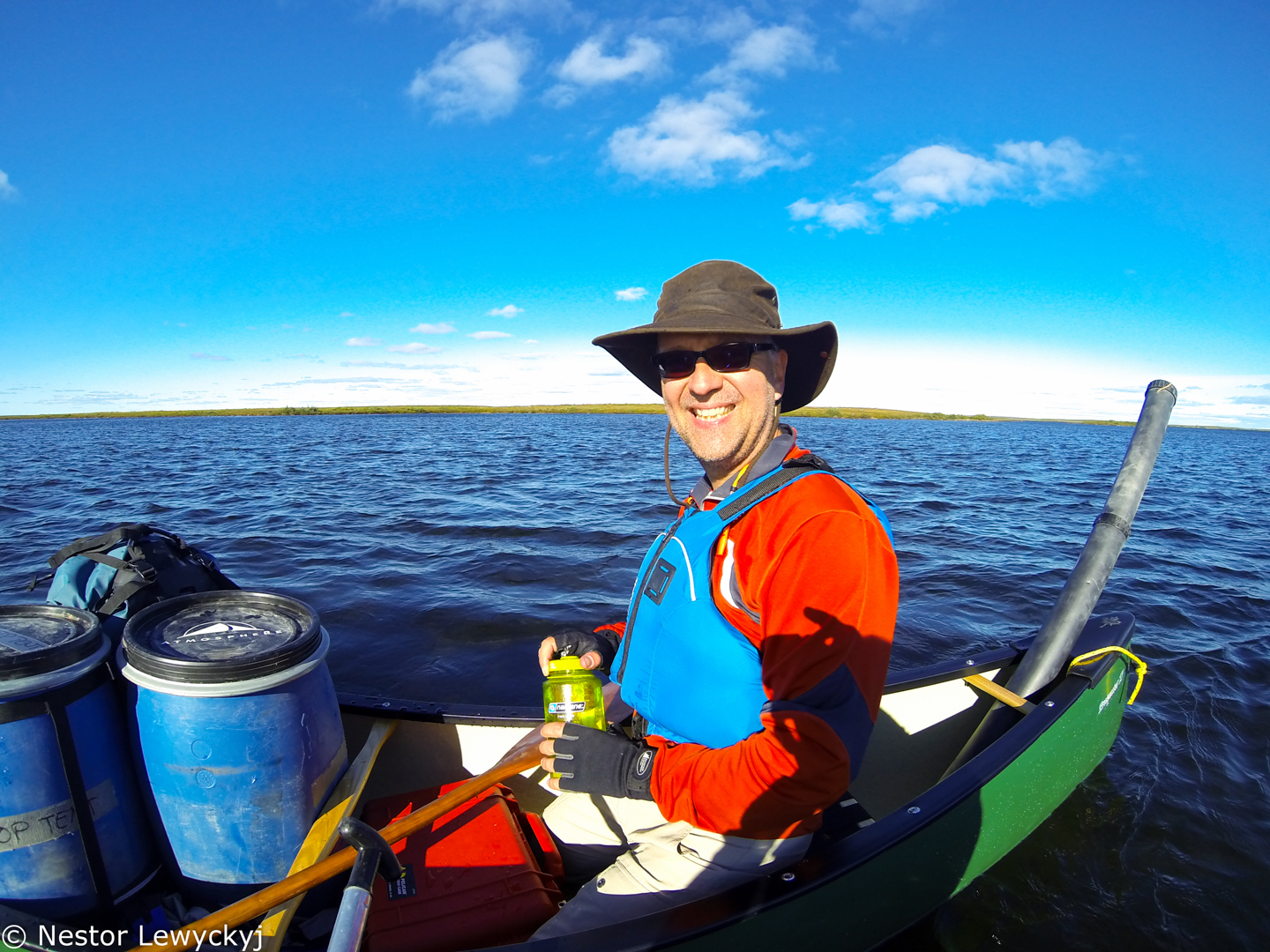 Meandering through one of the small channels as we approach Eyeberry Lake. We left the main channel of the Thelon and decided to approach the lake from the south where it breaks up into a number of channels. It was fun, but there was a wind rising and some of that was tough with very shallow water