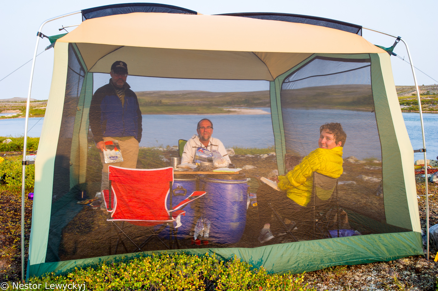 With the bugs coming out, the bug tent was a great sanctuary. Having one is a necessity out there, if you want to be able to sit around and talk. I have seen people canoeing in pairs, and having a bug tent, just for two poeple.