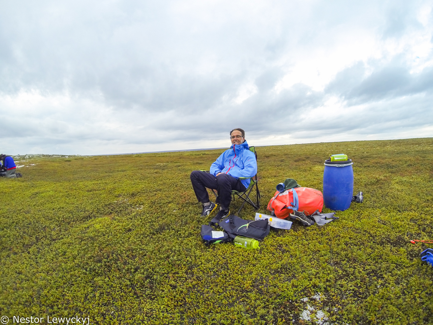 Olesia was getting burnt by the relentless sun so she started covering herself out. The whole first week was absolutely amazing. It was hot, light wind, constant sun without any clouds in the sky, and no bugs. It was hard to believe. I told all of the newcomers that this was NOT common up here. It helped that it was August was well. Last time in 2010 we were out in July and it was much buggier