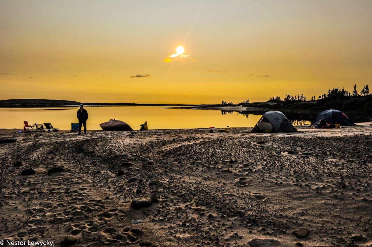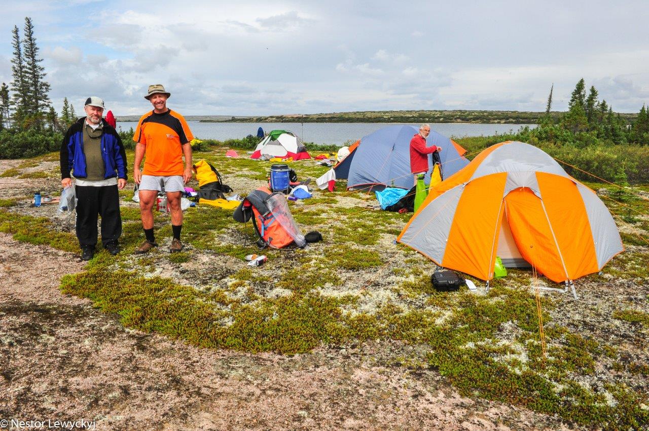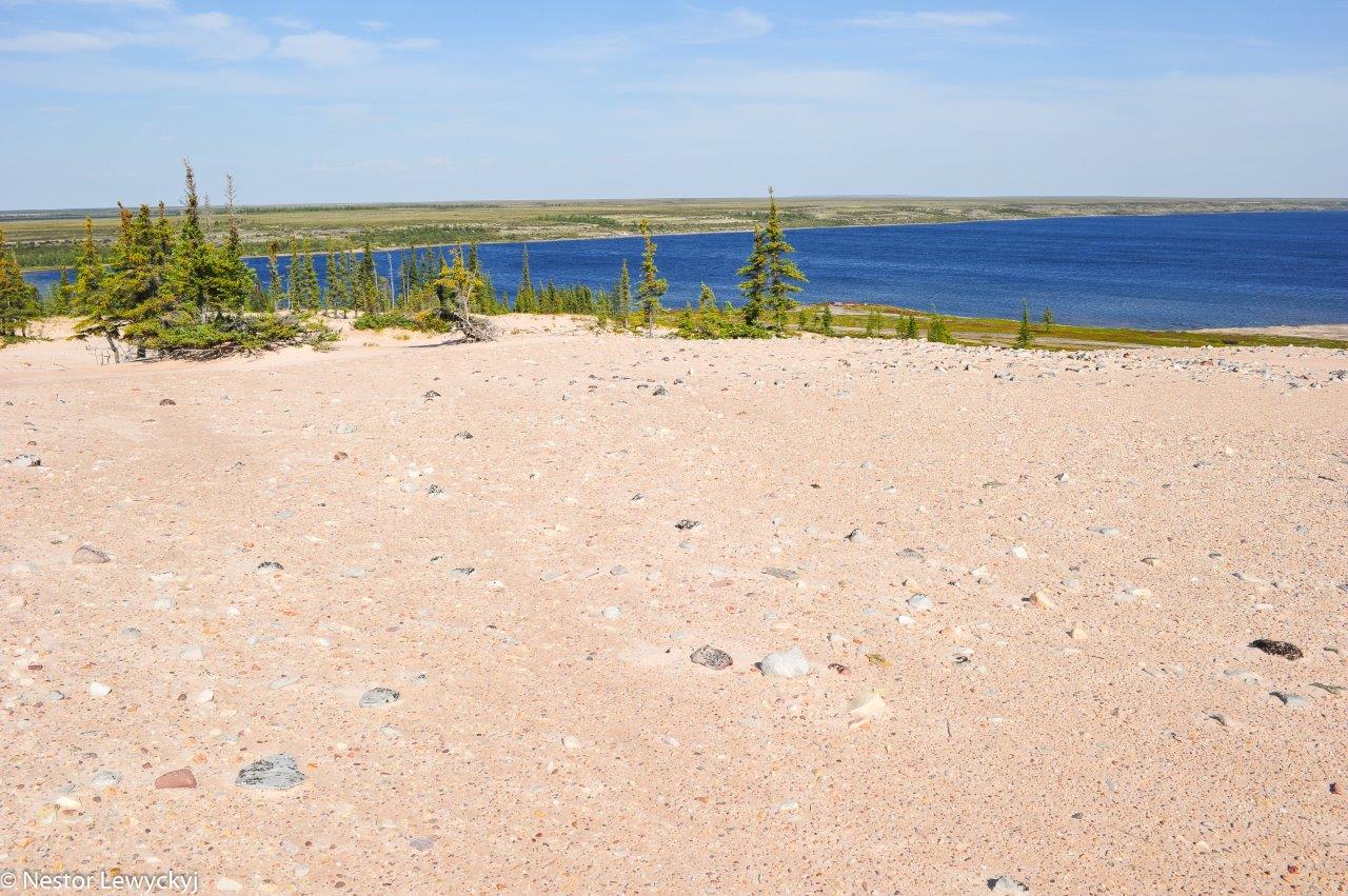 We were already north of the official Arctic tree line. The Thelon Sanctuary, sometimes called the Thelon Oasis, was quite a bit north of us and it supports significant stands of trees by the river due to local geographical conditions, we were not seeing a lot of trees. This is the tundra, and below us was permafrost. The tent pegs pulled out of the ground in the morning were very cold.