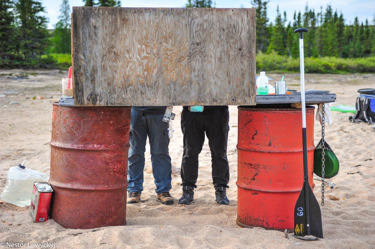 Mychajlo had a clever way of setting up the canoes to break the wind for our kitchen